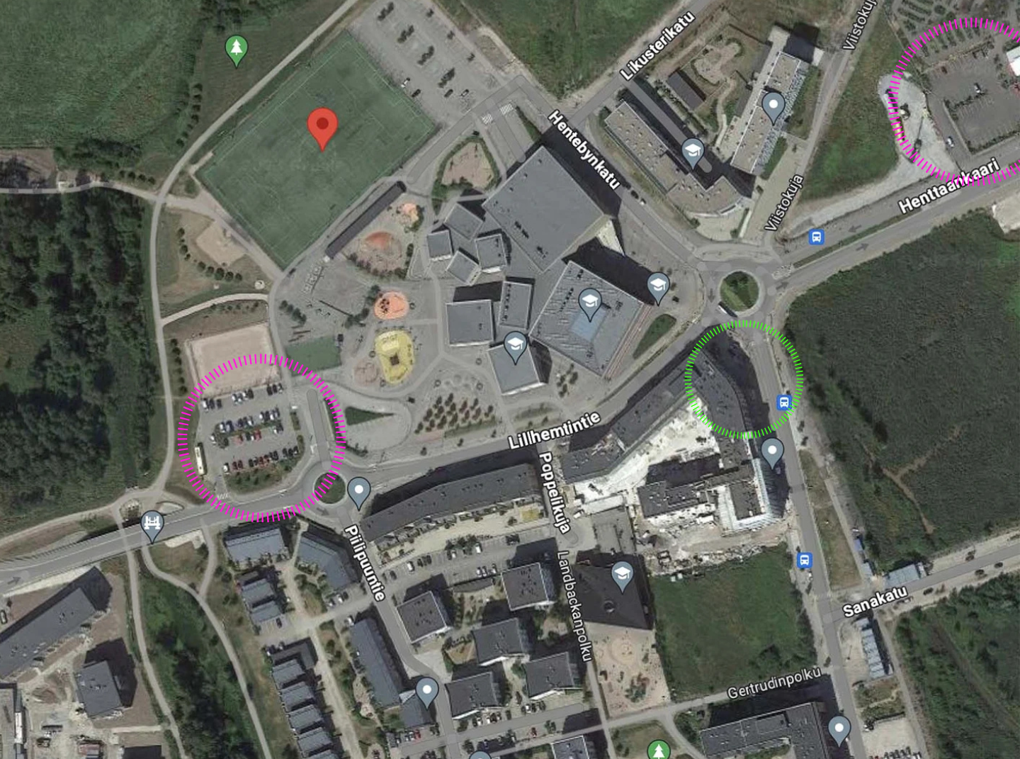 Autoilijoille löytyy parkkipaikkoja Opinmeän kampuksen parkkipaikalta sekä lähialueen hiekkakentiltä.